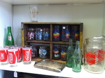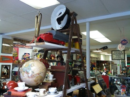 Mason jars, tube radios, mid century furniture and decor, coca cola merch, signs, old newspapers, military, handmade sculptures and art, glassware, wood crates, PLENTY of ingredients for your next pinterest project!!!